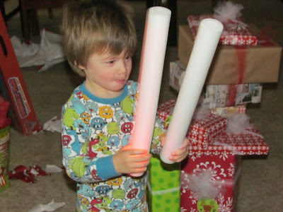 This styrofoam light-up stick may have been Luke's favorite gift all Christmas. |